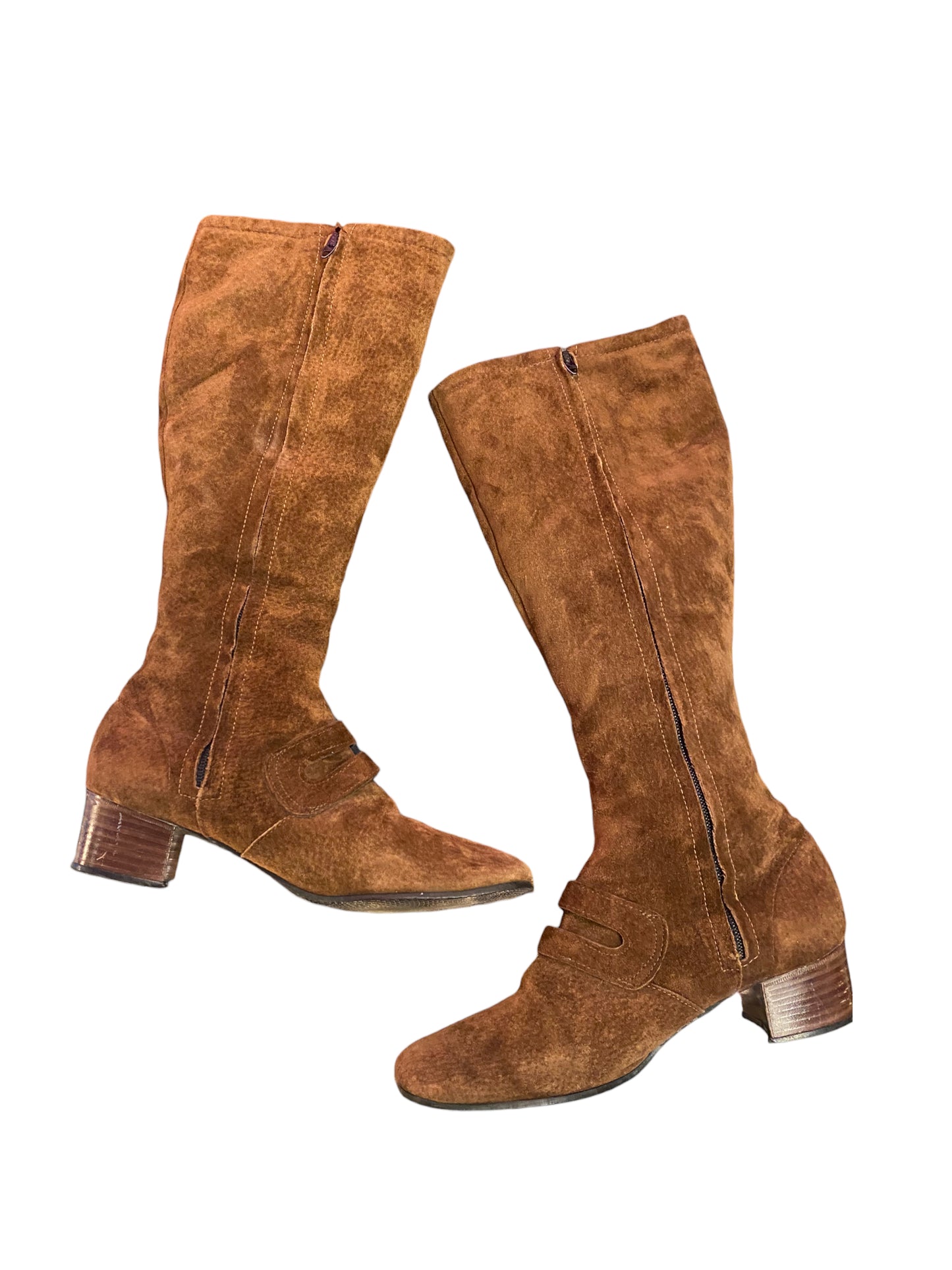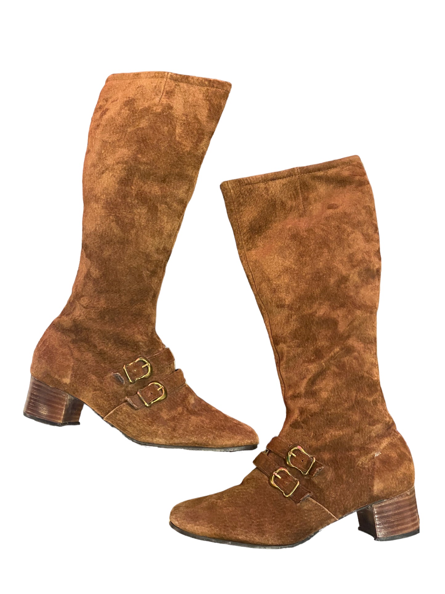 1970s Brown Suede Go-Go Boots with Buckle Details