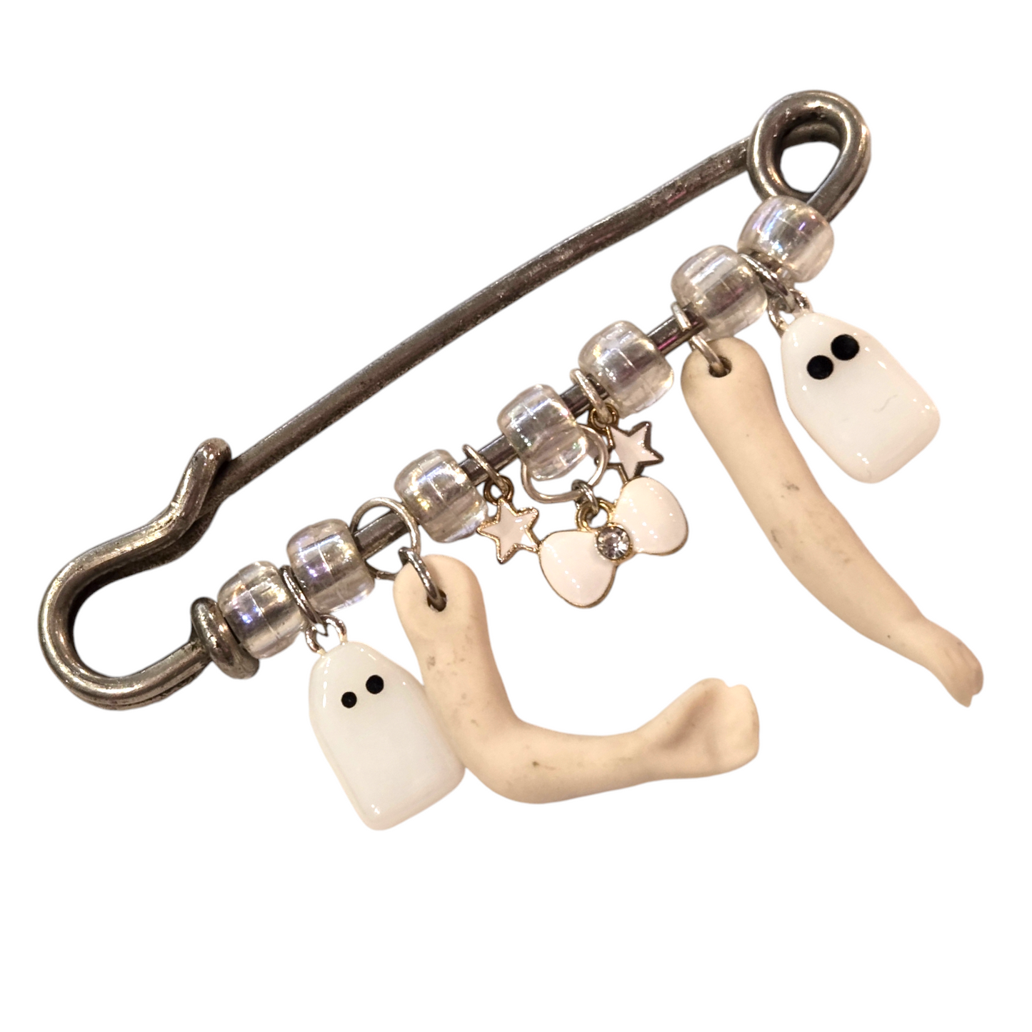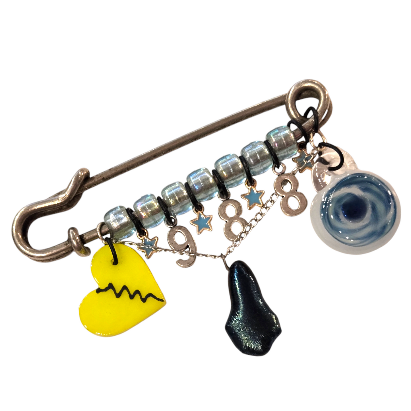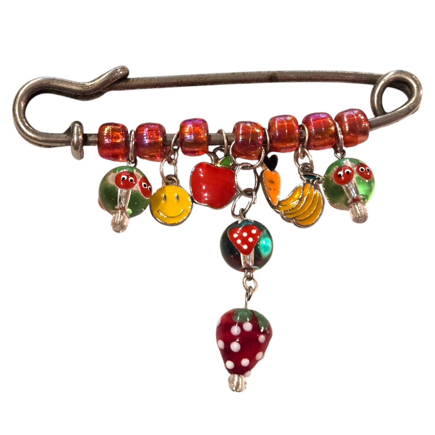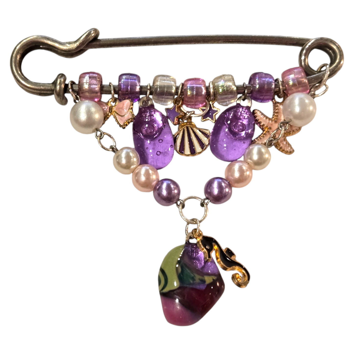 made with love in seattle by manic pixie dream squirrel. Each pin is made from an antique diaper pin, complimented with colorful beads and charms. Please note due to their handmade nature that each one is unique!