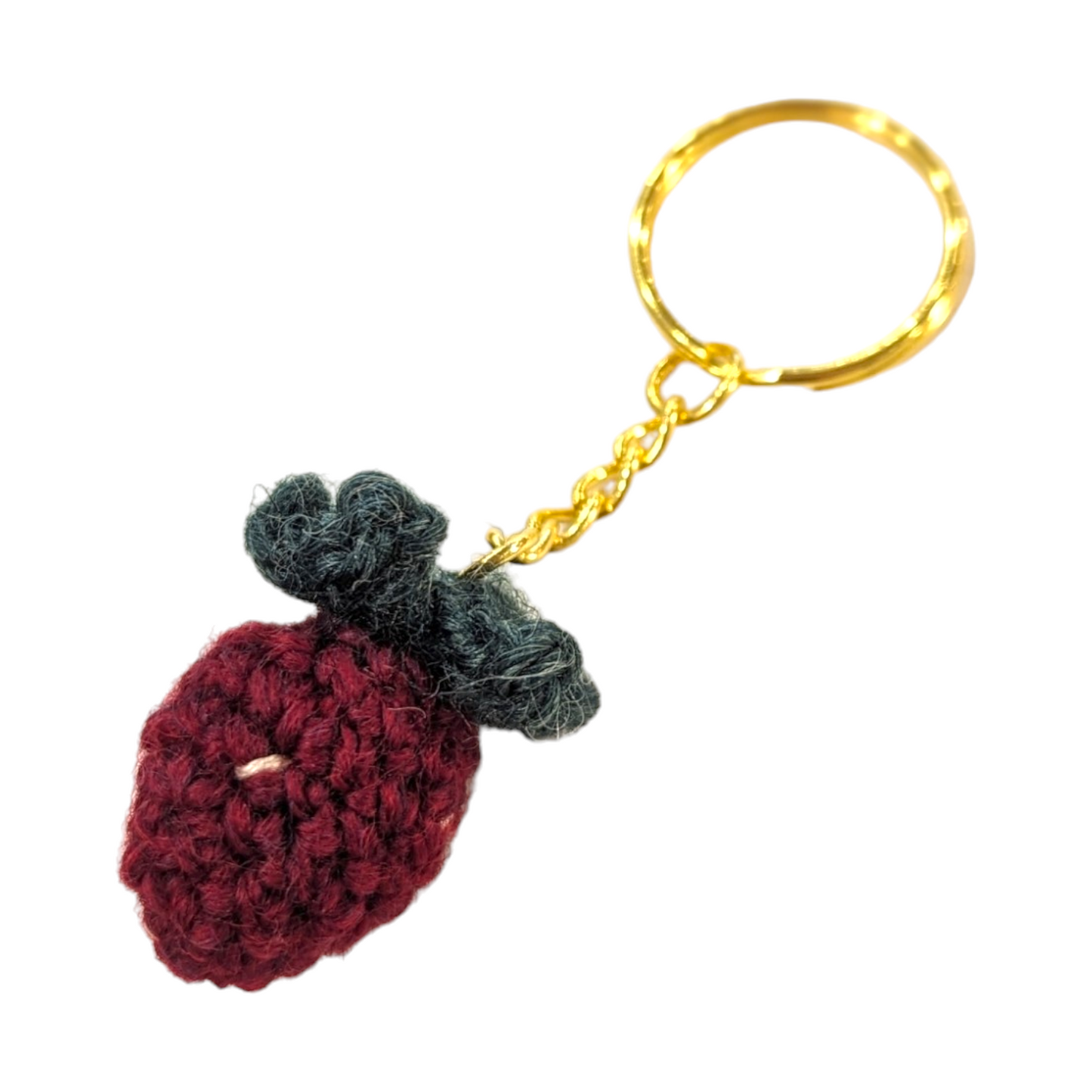 Each strawberry keychain measures approx 3.25" in total length. Each mushroom keychain measures approx. 4" in total length.