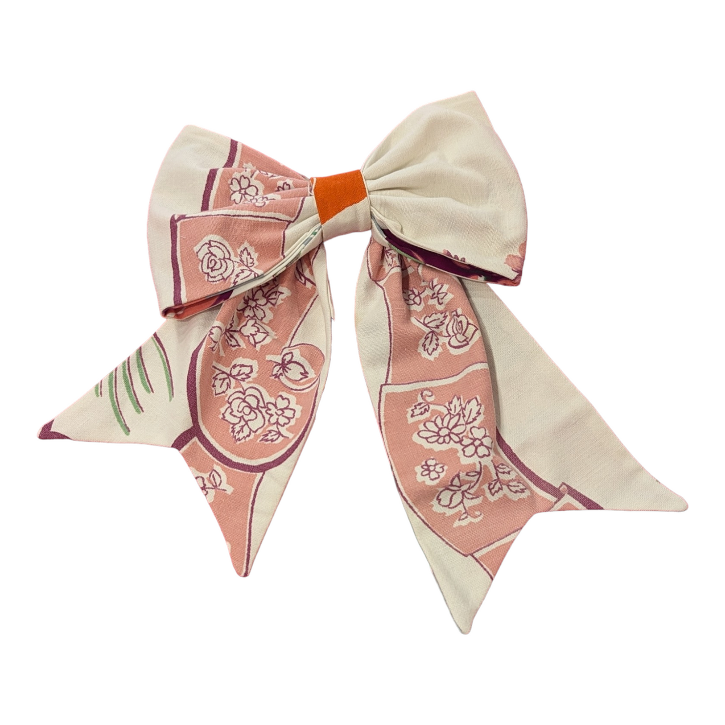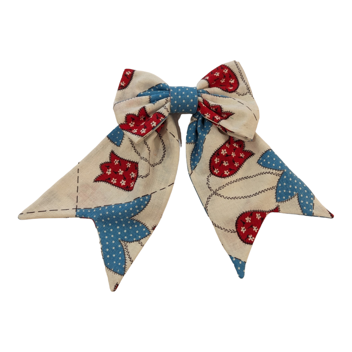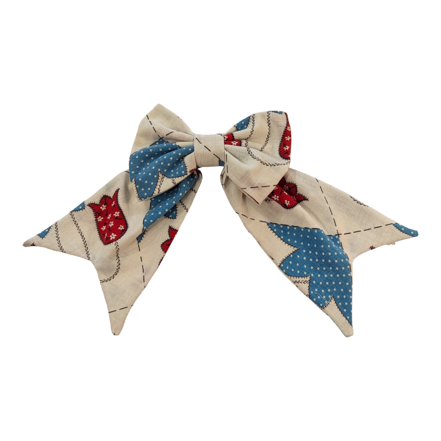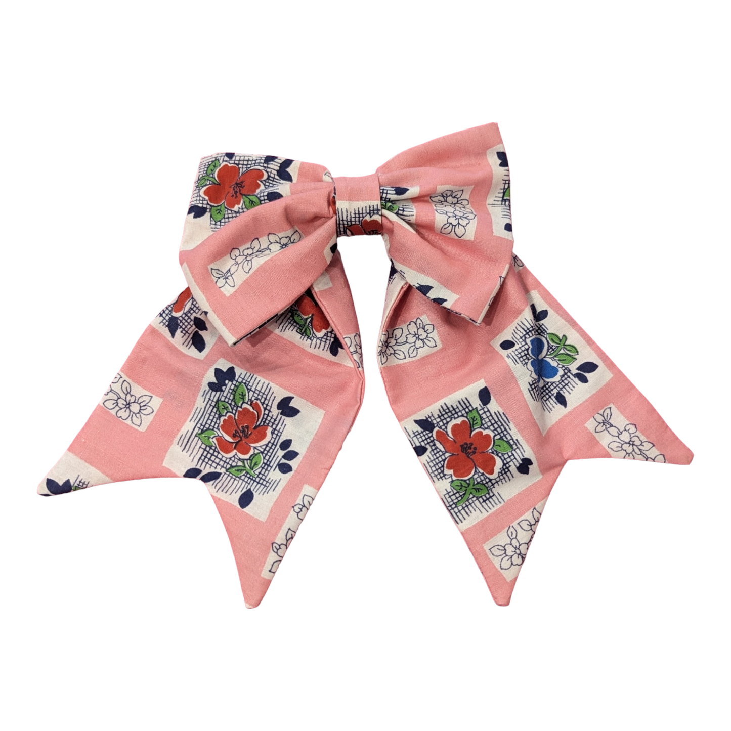 Made with vintage fabrics. All bows have silver hair clips on the back, but these bad boys will clip on to more than just your hair! Try it on the top of a tree or with a ribbon on your neck! Endless possibilities, y'all.