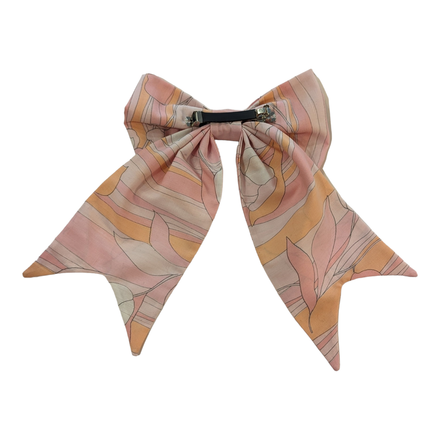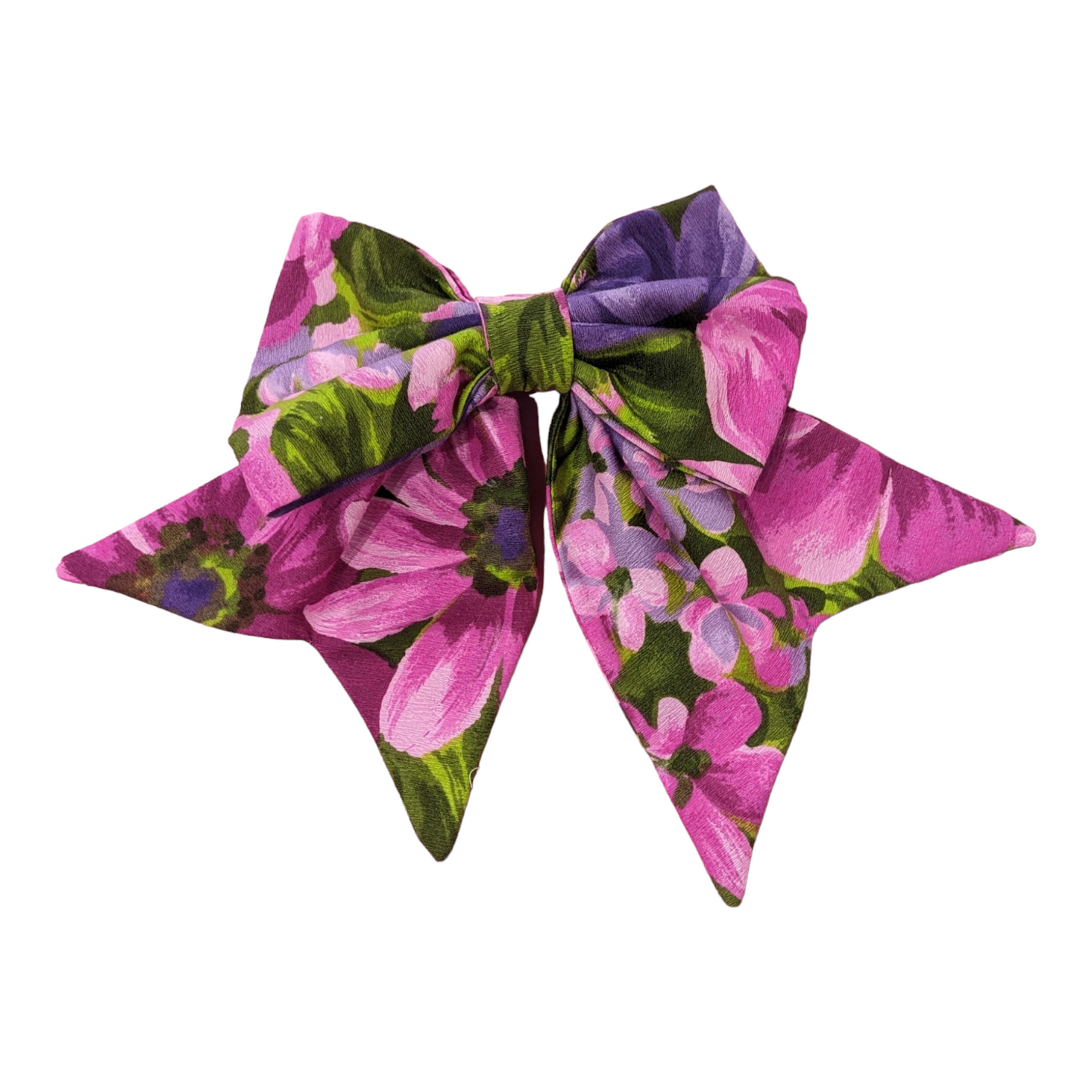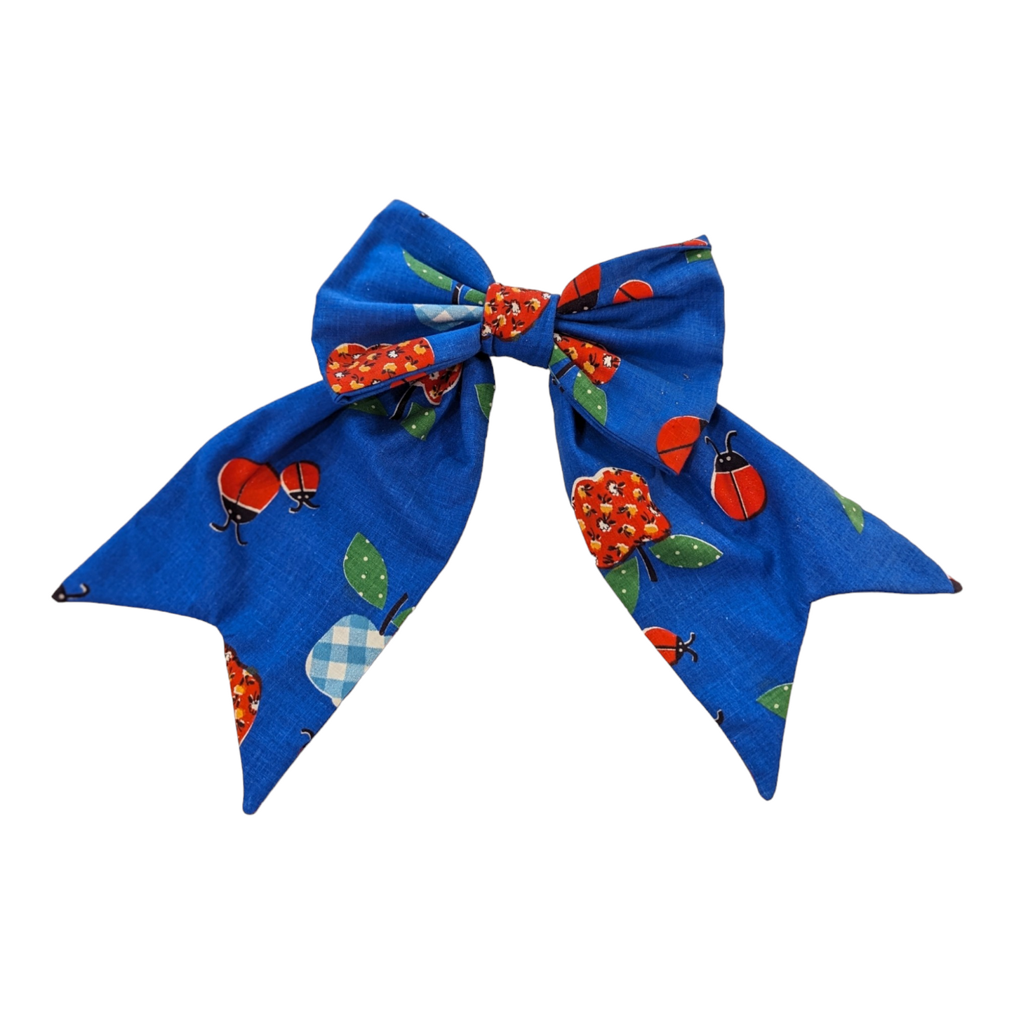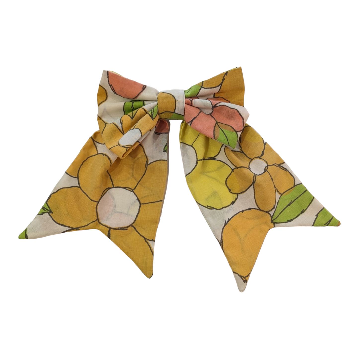 Made with vintage fabrics. All bows have silver hair clips on the back, but these bad boys will clip on to more than just your hair! Try it on the top of a tree or with a ribbon on your neck! Endless possibilities, y'all.