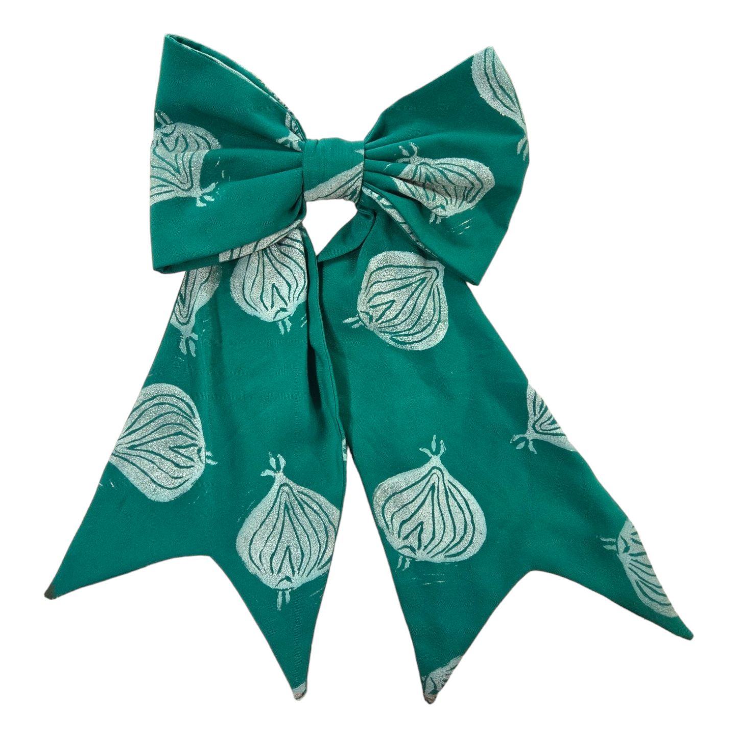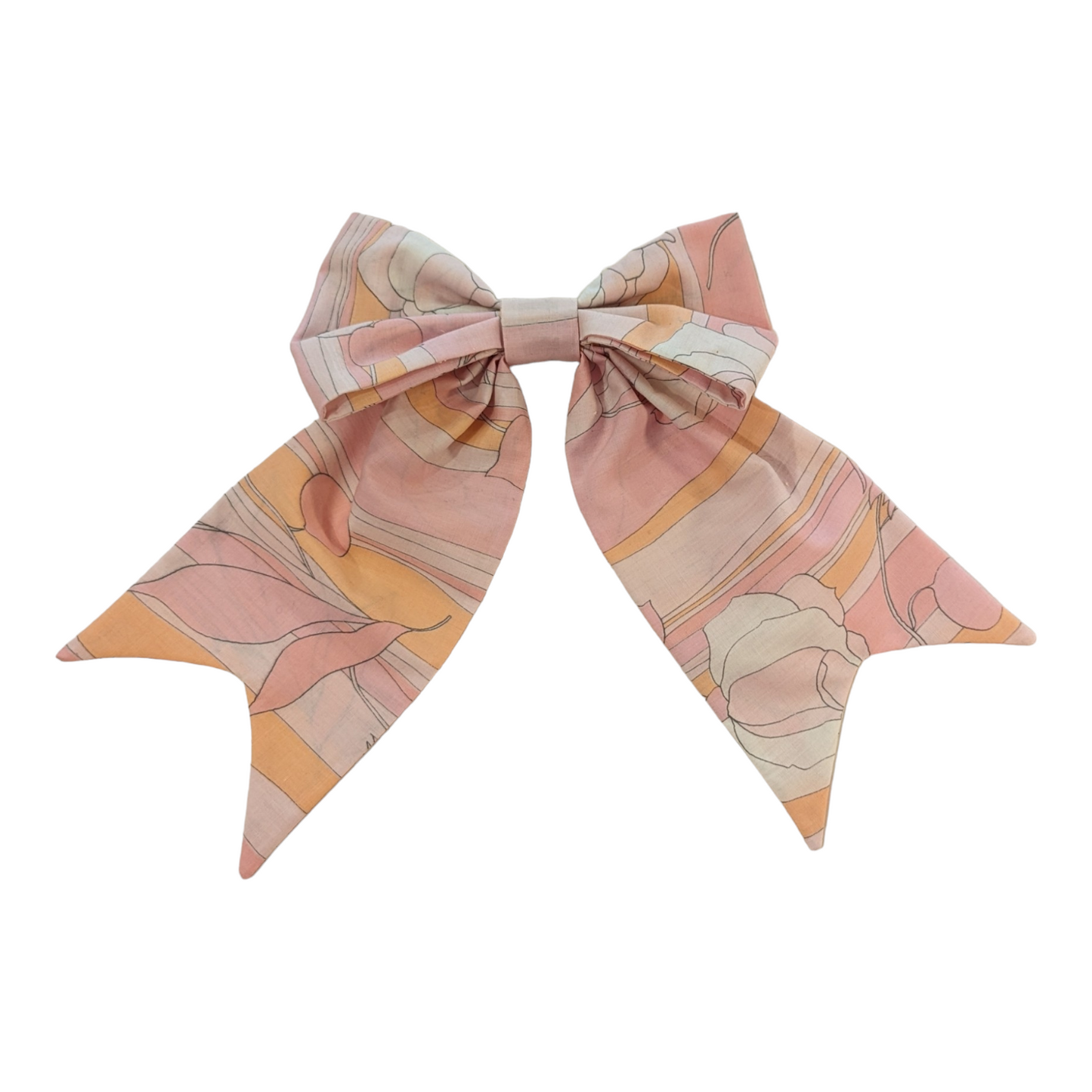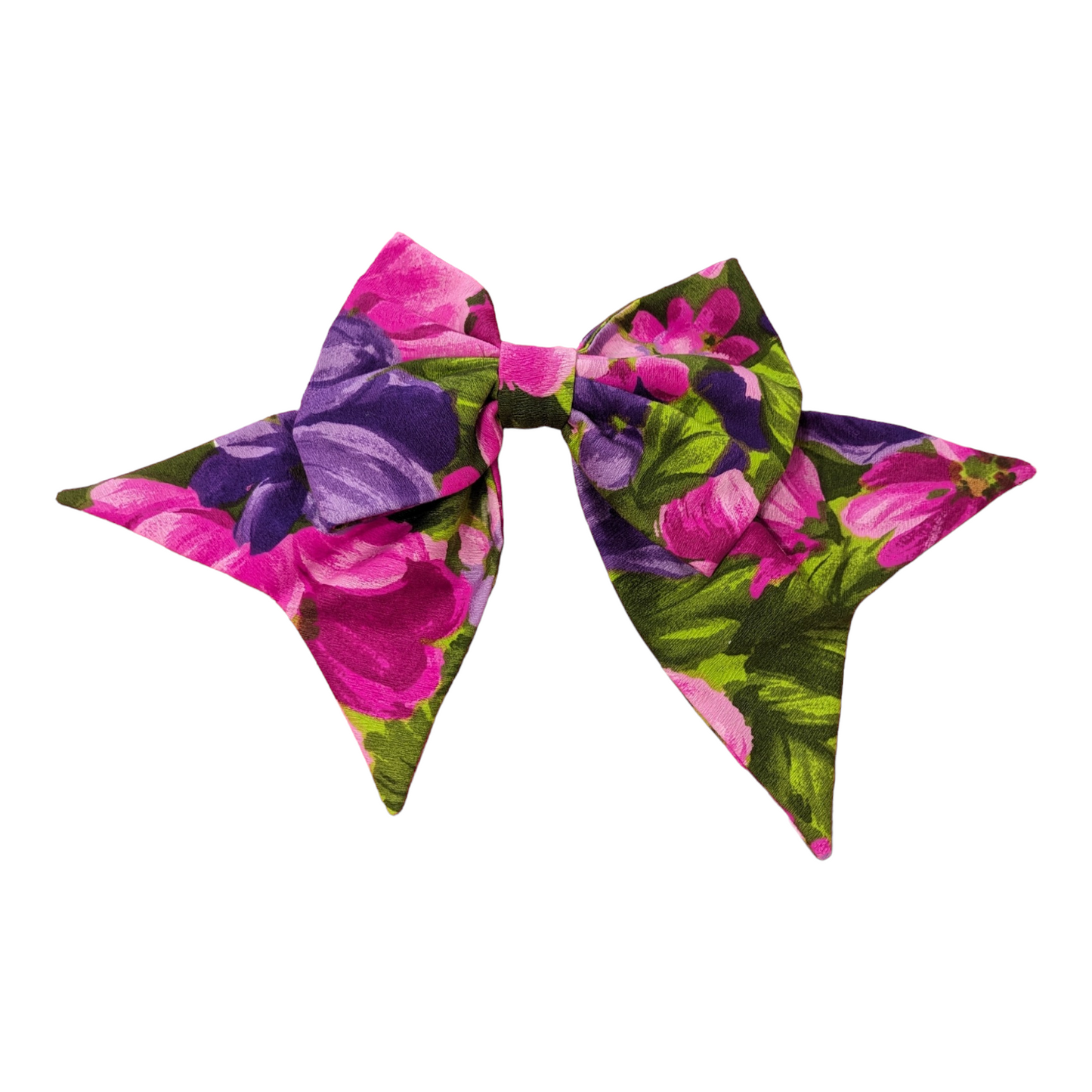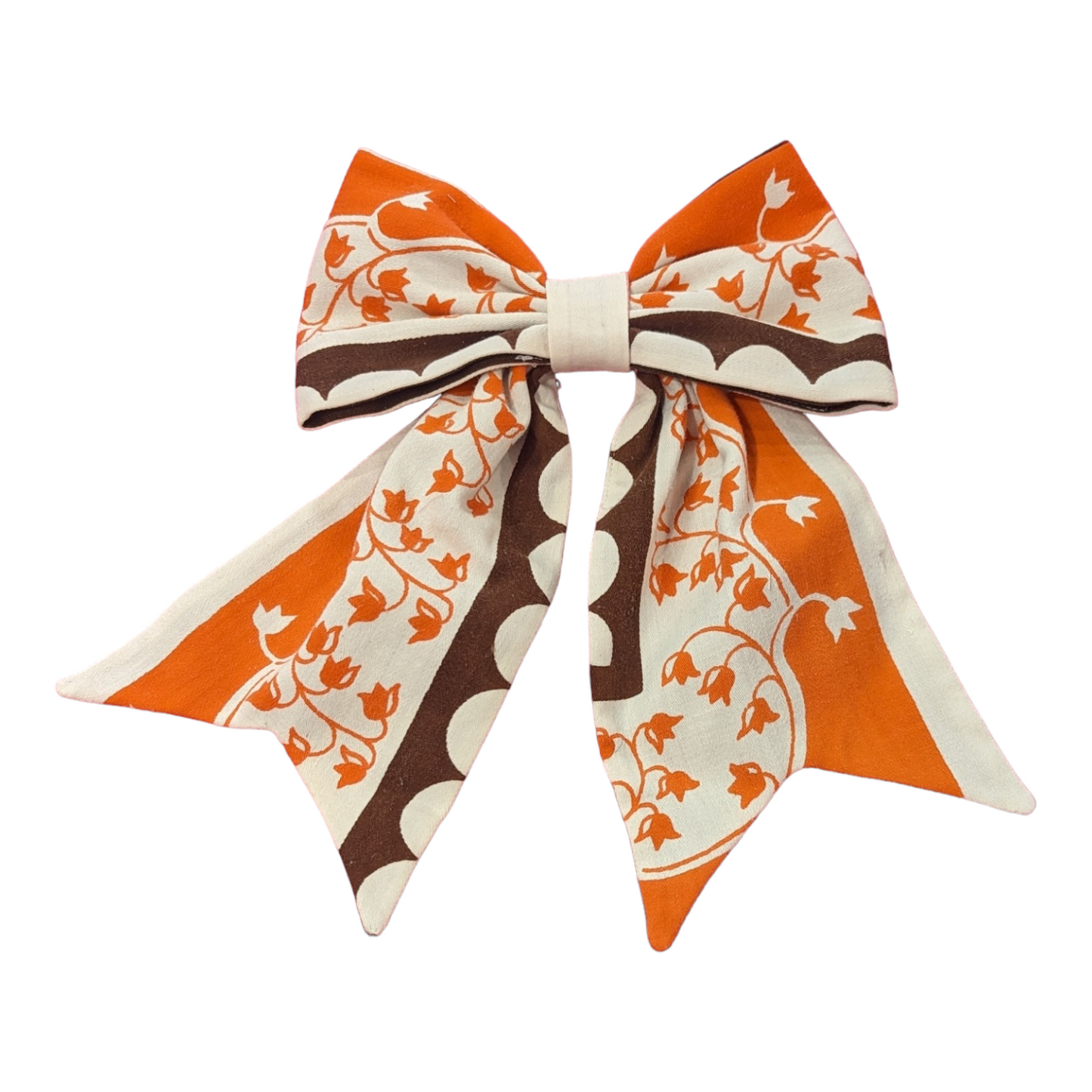 Made with vintage fabrics. All bows have silver hair clips on the back, but these bad boys will clip on to more than just your hair! Try it on the top of a tree or with a ribbon on your neck! Endless possibilities, y'all.