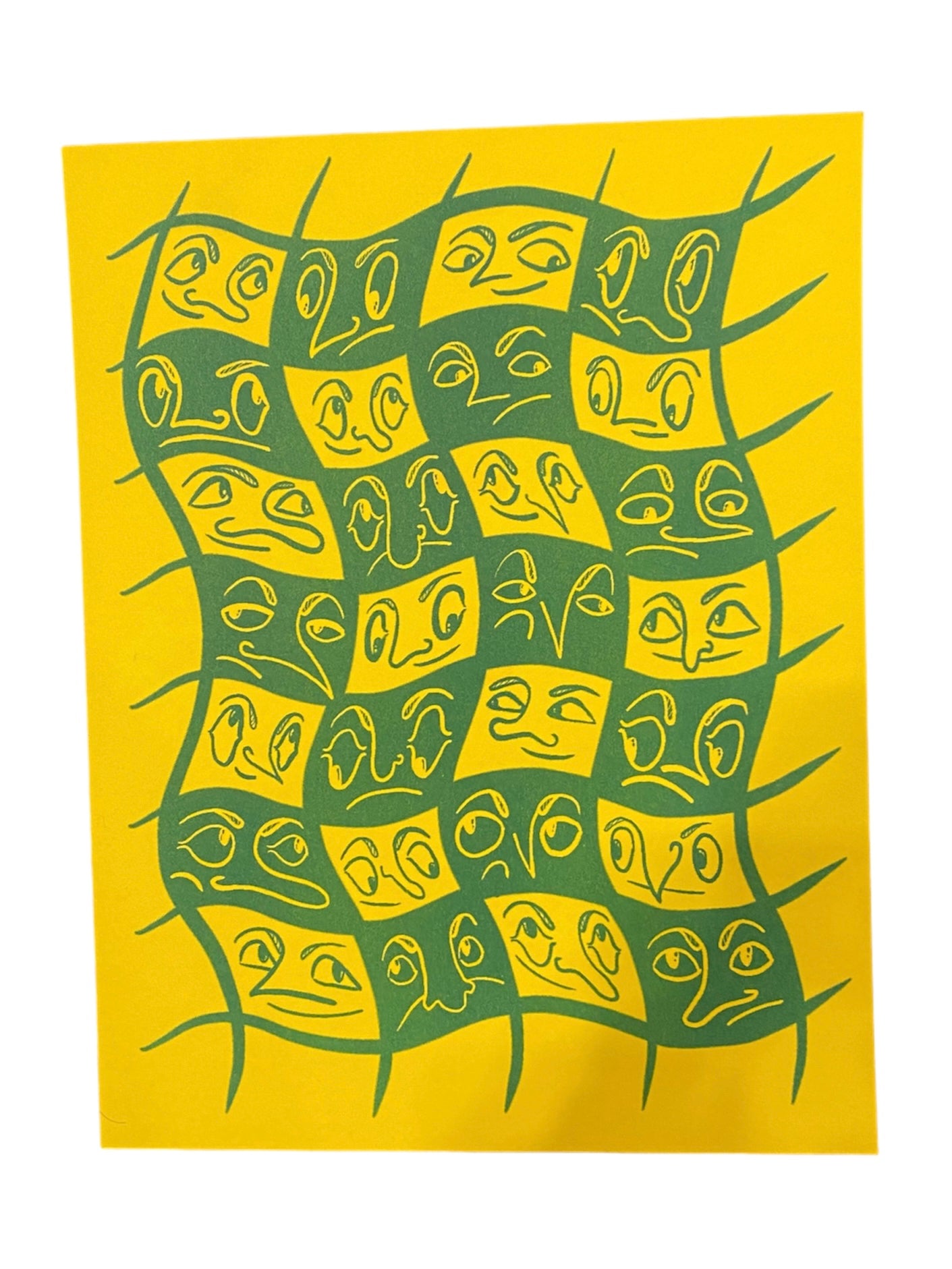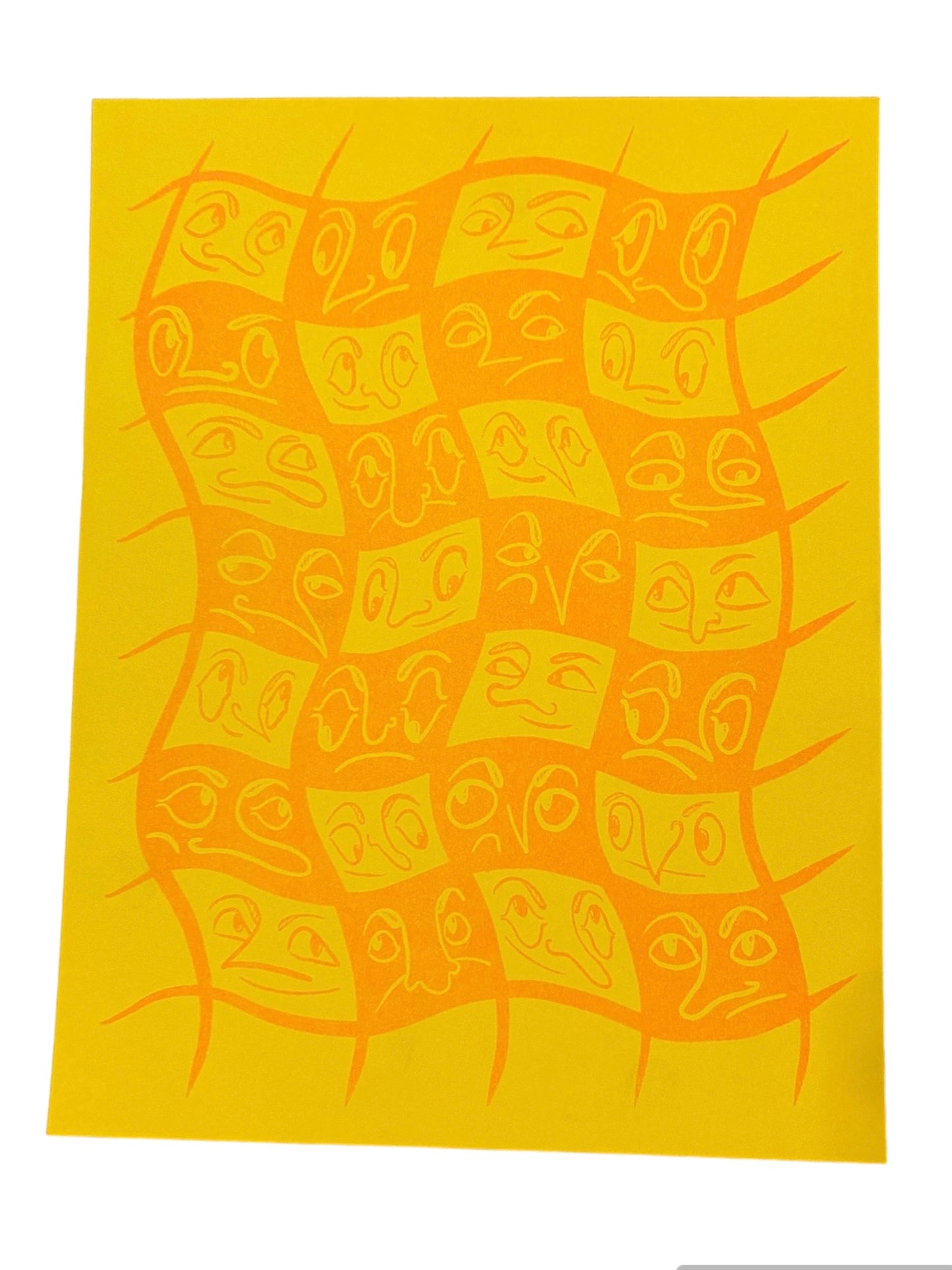 Handmade Goofy Faces Risograph Print by Stoopid Chic