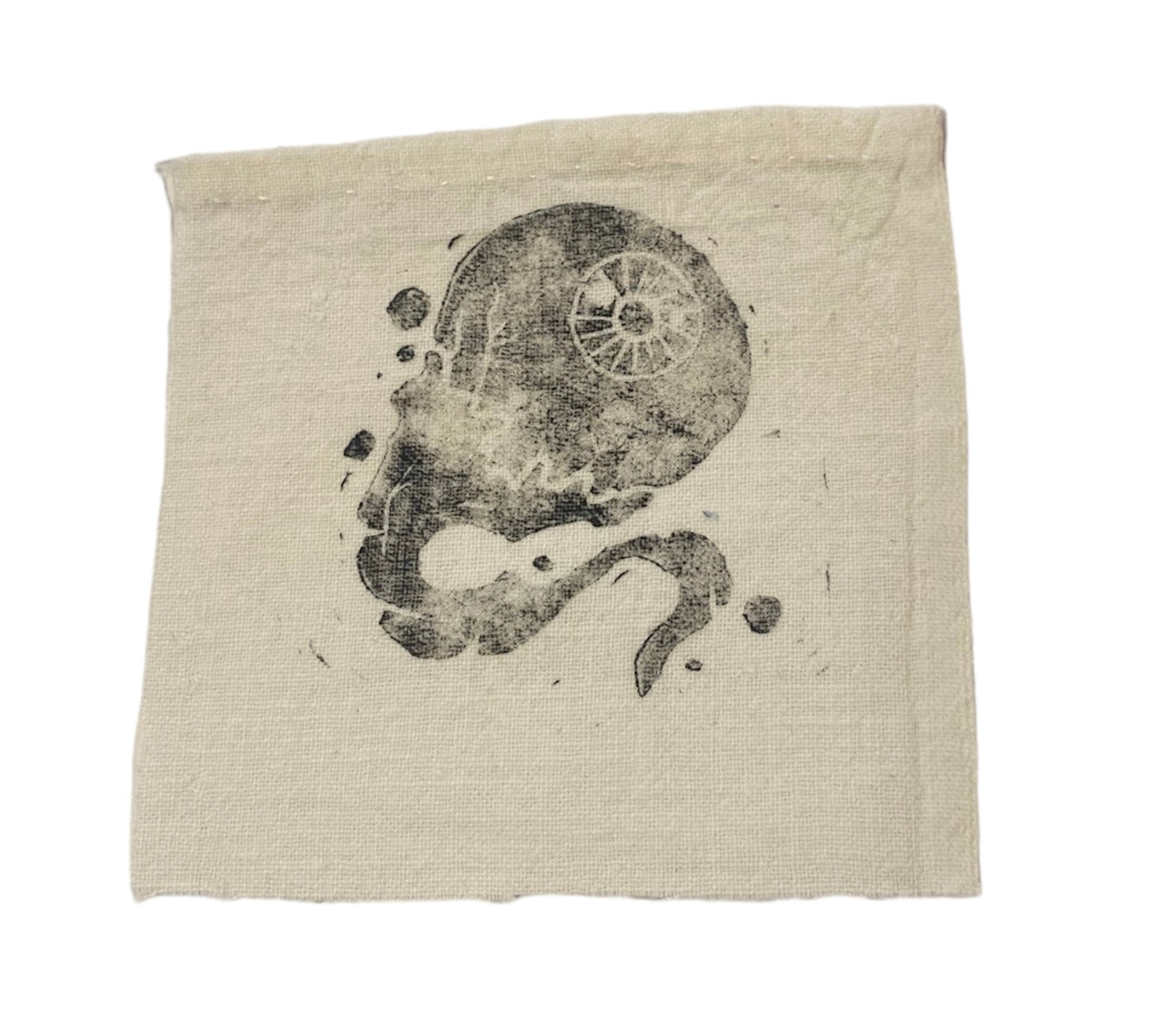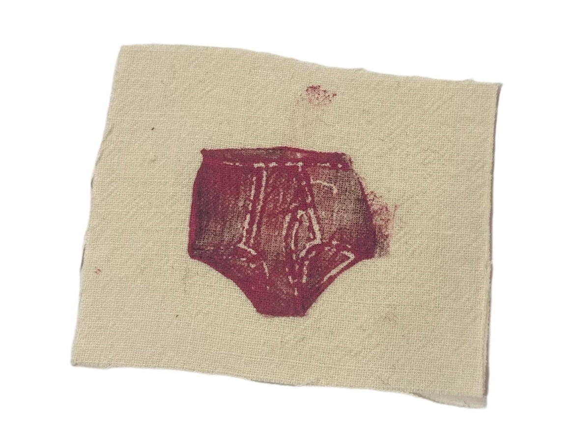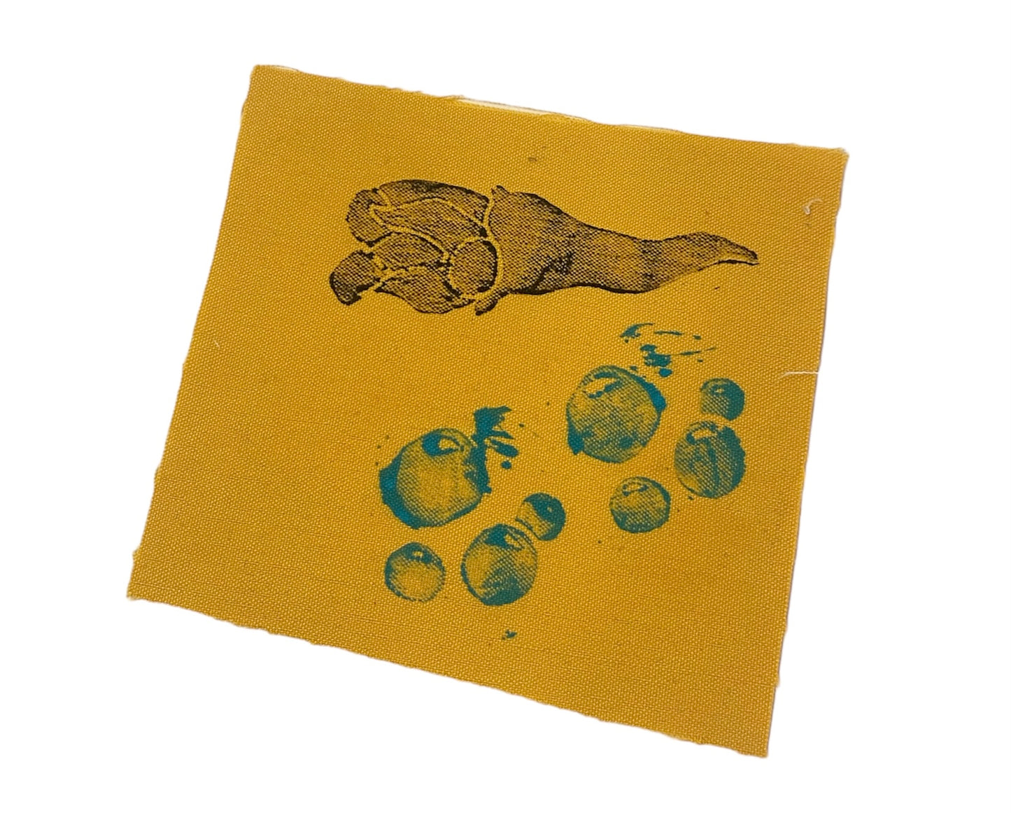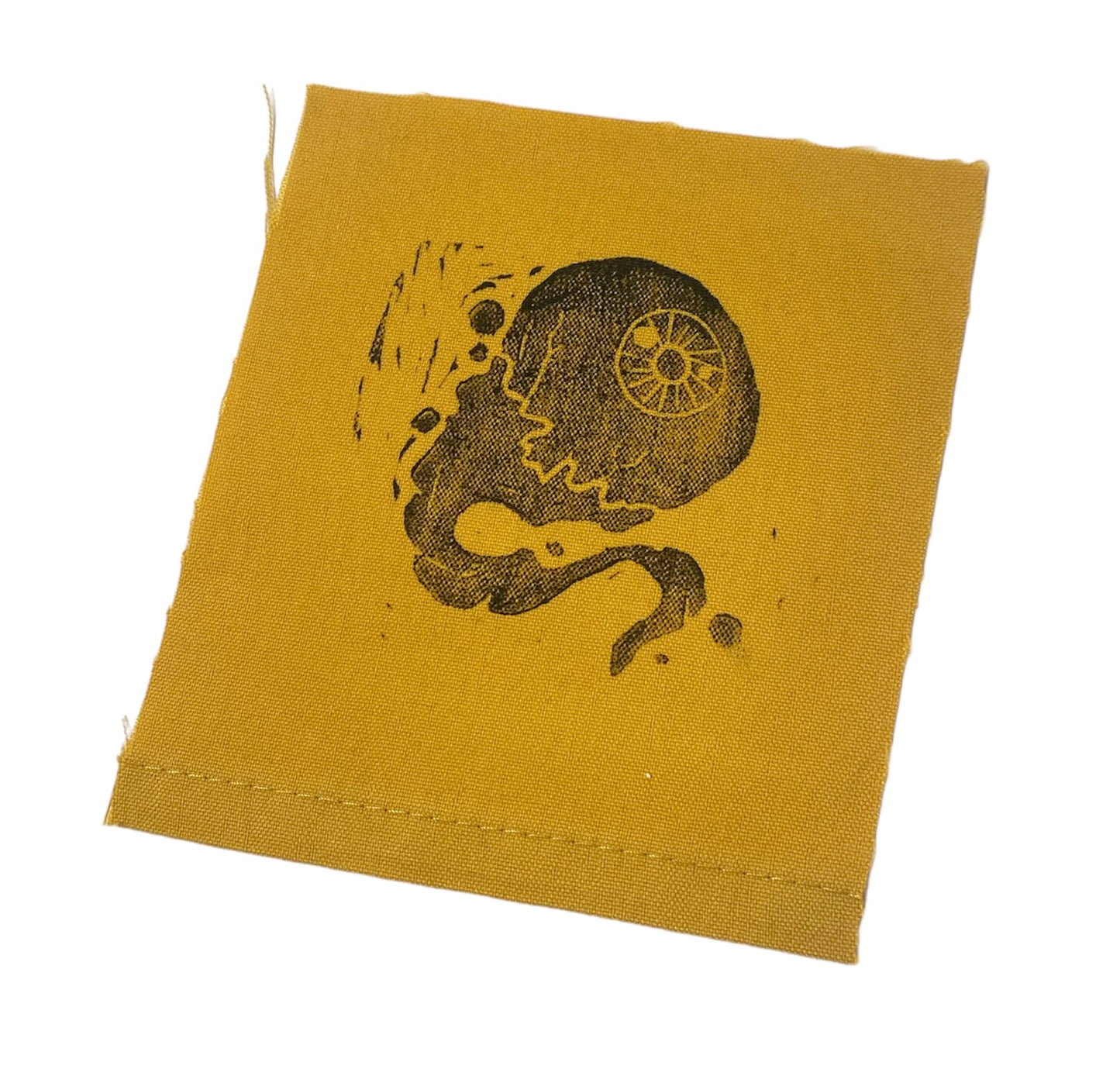 block printed on scrap fabric