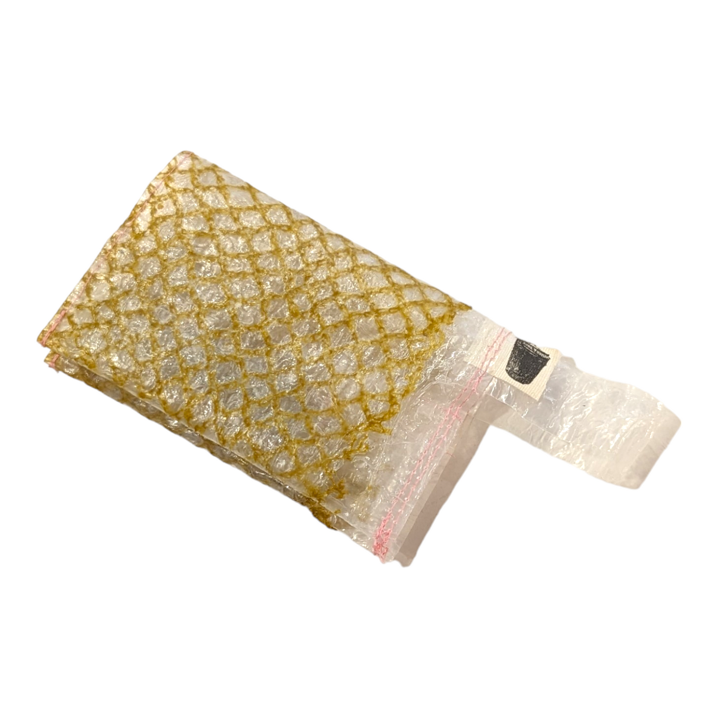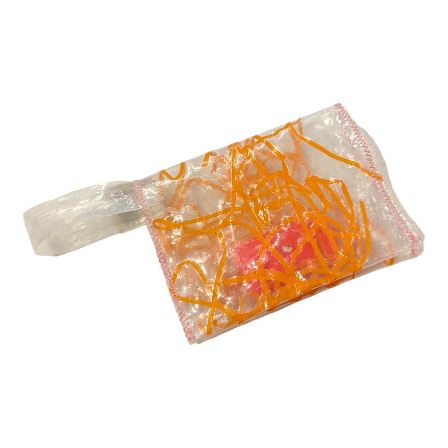 Made of recycled plastic! These little wallets measure approximately 5 1/4" x 3 7/8" unfolded.