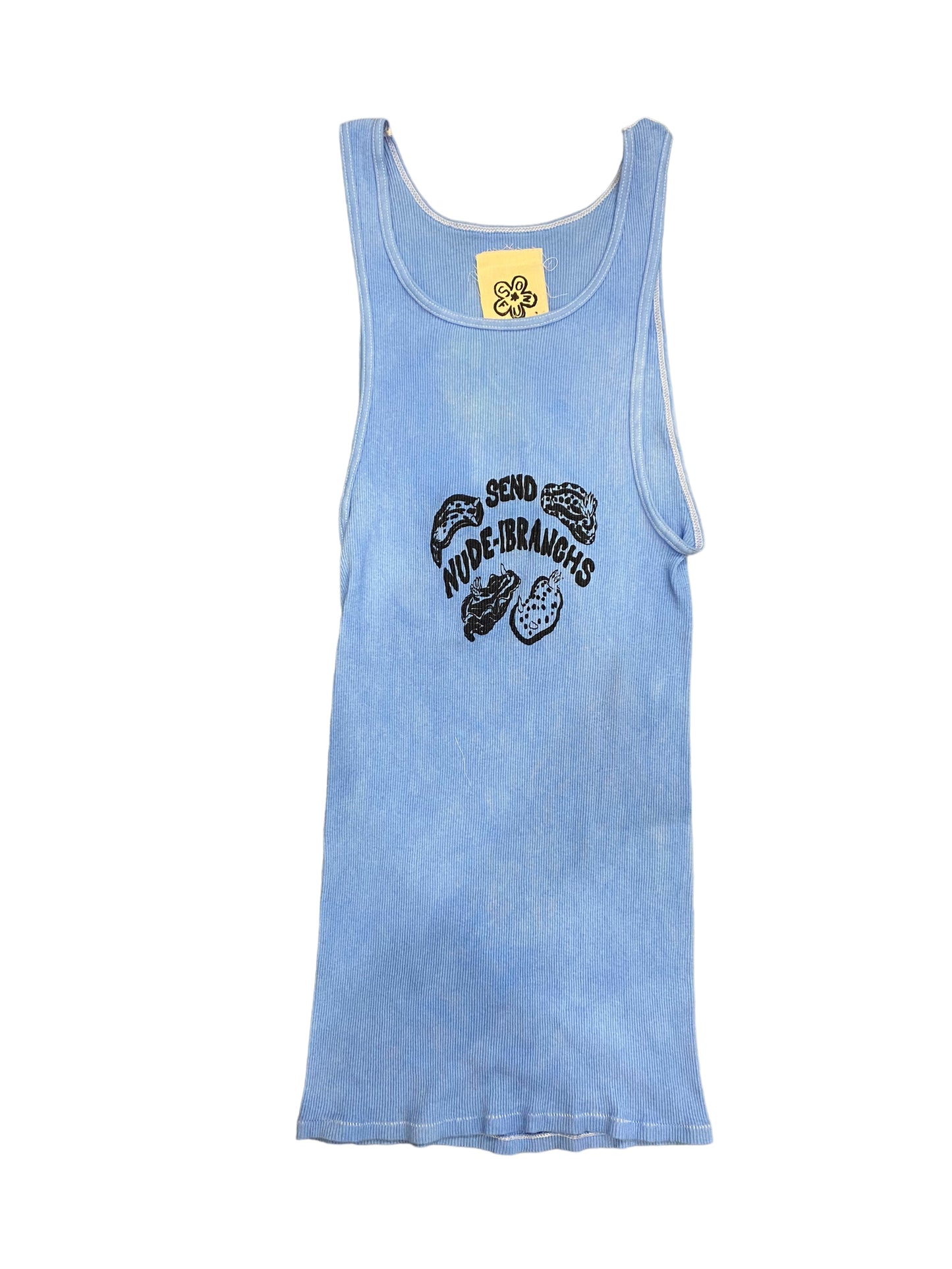Sky blue “Send Nude-ibranchs" ribbed tank top. These are long but easily croppable!